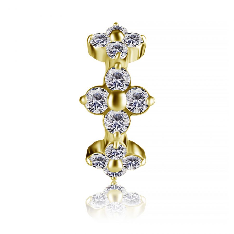 elegant belly button piercing made of 18k gold-plated cobalt-chrome alloy, 100% nickel-free. The clicker closure ensures a comfortable, secure fit and easy to wear. The delicate flowers, embellished with premium cubic zirconia crystals, give the jewelry a refined shine.