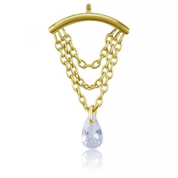 refinado y único, este accesorio para vertical helix combina un diseño elegante con el valor del titanio bañado en oro de 18k, con acabado pulido a mano. Las finas cadenas que cuelgan de la curva oculta de la oreja terminan con una gota de cristal de circonia cúbica, aportando un toque de luz que no pasa desapercibido.