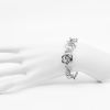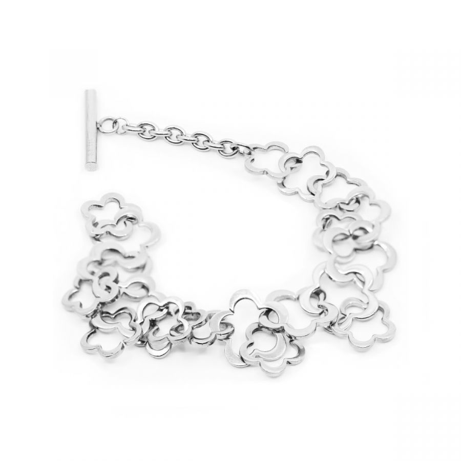 una encantadora pulsera con una hilera de pequeñas flores, todas hechas de acero quirúrgico. ¡esta pieza tiene un diseño sencillo pero atemporal! para cerrar la pulsera, simplemente pase el segmento a través del anillo.