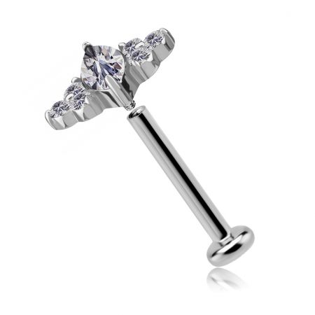 este repuesto cuenta con una rosca externa de 0,8 mm y es compatible con piercings de 1,2 mm, como barras y labrets. Presenta un diseño icónico y está adornado con cuatro impresionantes circonitas cúbicas de brillo superior. Fabricado en aleación de cromo-cobalto chapada en oro 18k, es 100% libre de níquel. Gracias a las propiedades avanzadas de esta aleación, nuestras joyas combinan ligereza, resistencia y un acabado impecable, superior al de los metales tradicionales. Material perfecto incluso para las pieles más delicadas.