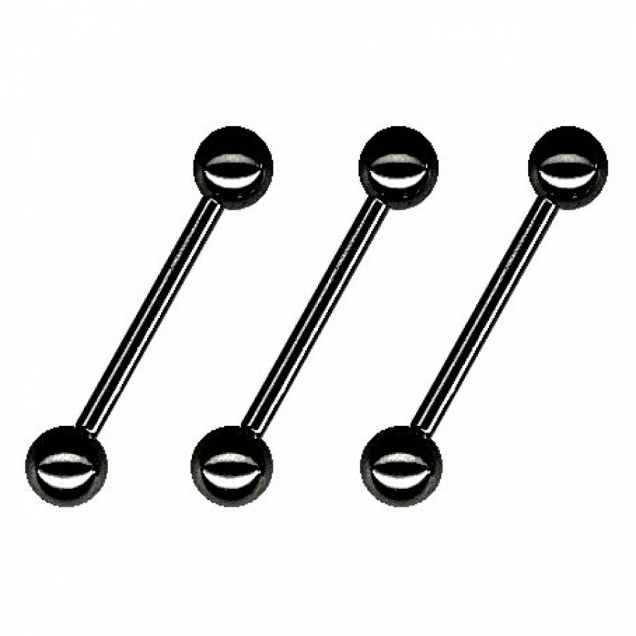 Barre en acier chirurgical noir pvd indiqué pour les trous de piercing. Parfait pour le piercing sur la langue mais on peut appliquer ce piercing aussi sur le mamelon, daith (trou sur la partie supérieure par rapport au tragus), helix, scaffold piercing (deux trous sur le cartilage de l’oreille), snud piercing (trou sur l’anti-helix), forward helix piercing (trou sur la partie supérieure de l’oreille), bridge piercing (trou sur la partie supérieure du nez, entre les yeux), avec épaisseur 1,2 millimètres, parfait pour le piercing sur le sourcil.