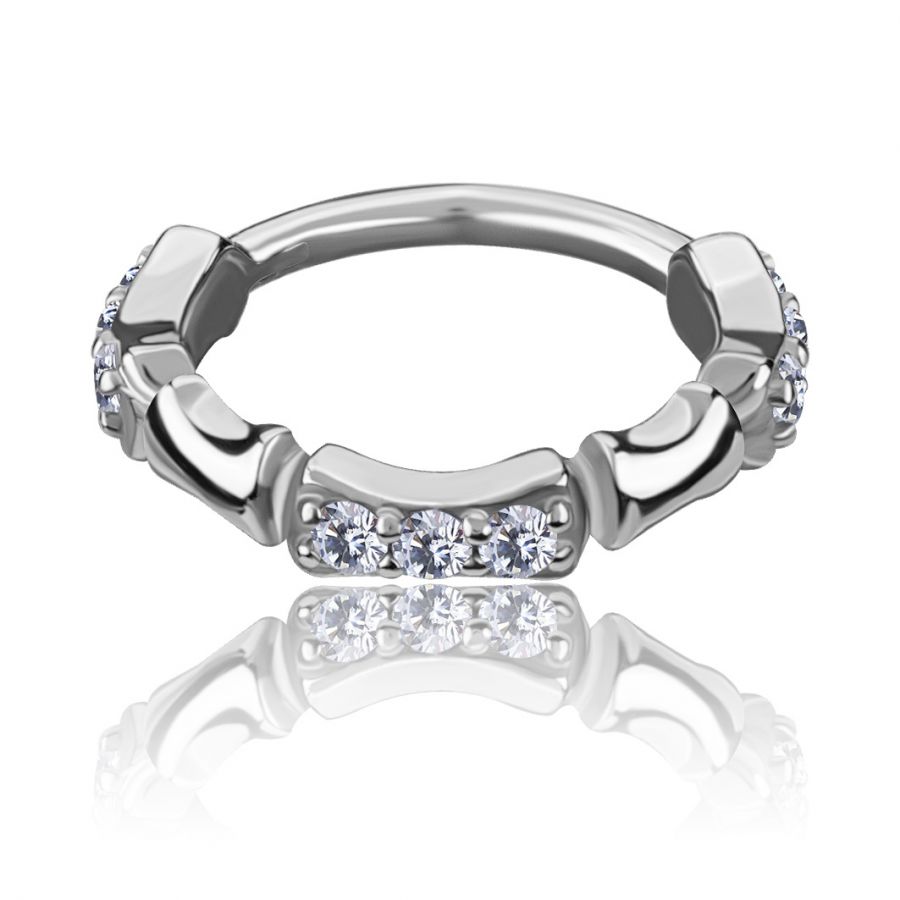 bague raffinée en alliage chrome-cobalt, 100% sans nickel, ornée de neuf cristaux de zircone cubique de première qualité. Son fermoir à clic pratique assure confort, sécurité et une touche d'élégance en toute occasion.