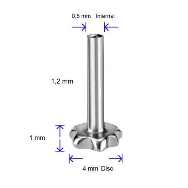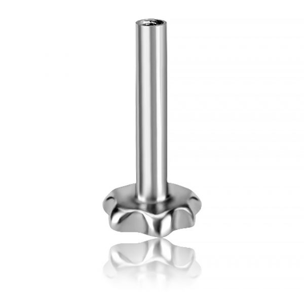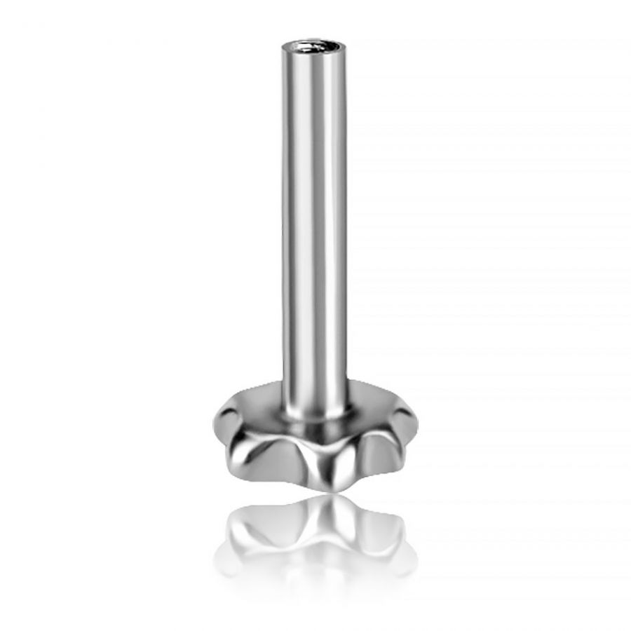 un ricambio con filettatura interna in titanio. Questo accessorio presenta un disco base a forma di fiore, compatibile con tutta la nostra collezione di ricambi con filettatura esterna.