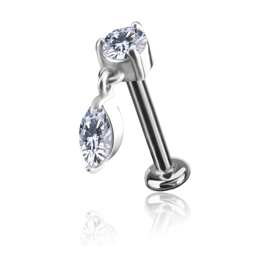 LABRET SENZA FILETTATURA CON RICAMBIO PREMIUM CUBIC ZIRCONIA E PENDENTE A GOCCIA