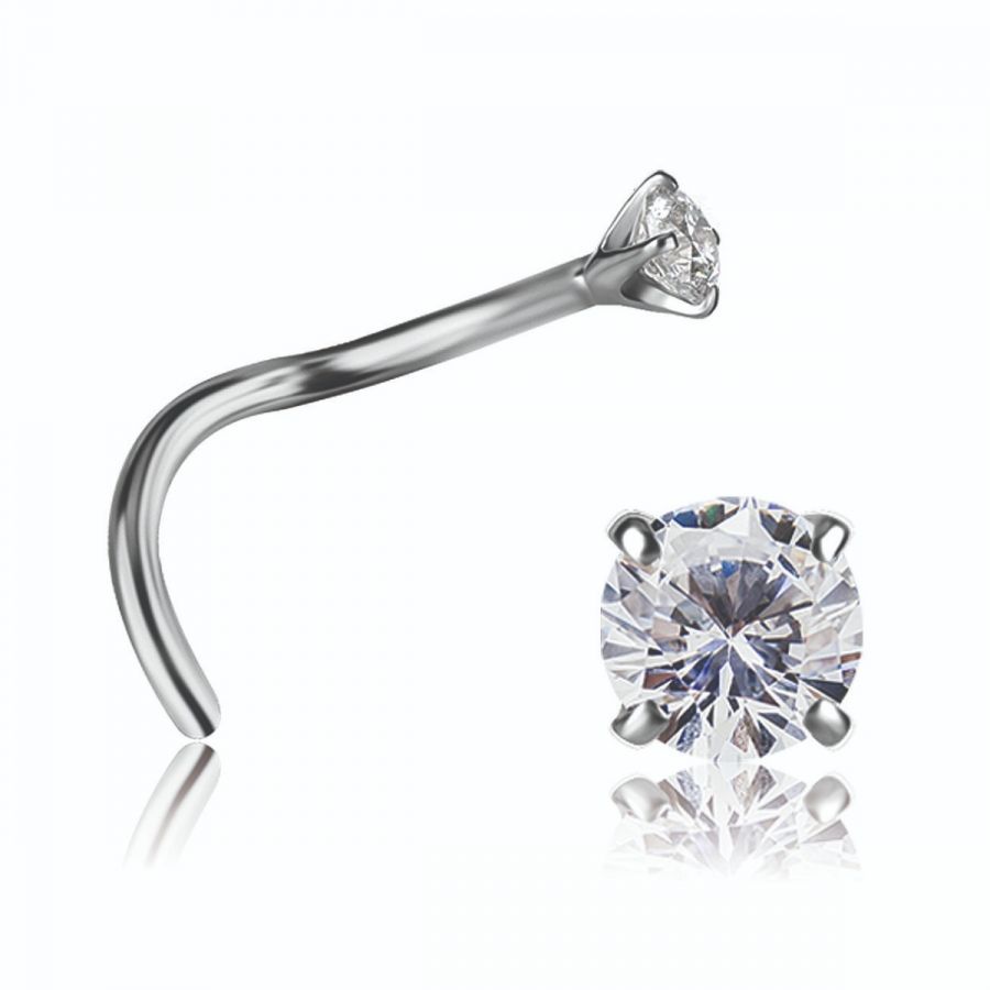 luminoso gioiello interamente realizzato in oro bianco 18 carati, lucido e sottile. Il punto luce è in cristallo di premium cubic zirconia. Realizzato per il piercing al naso.