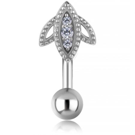 elegante piercing per ombelico realizzato in lega di cromo-cobalto placcato oro 18k, 100% nichel free. La chiusura a clicker garantisce una vestibilità comoda, stabile e facile da indossare. I delicati fiori impreziositi da cristalli di premium cubic zirconia donano al gioiello una lucentezza raffinata.