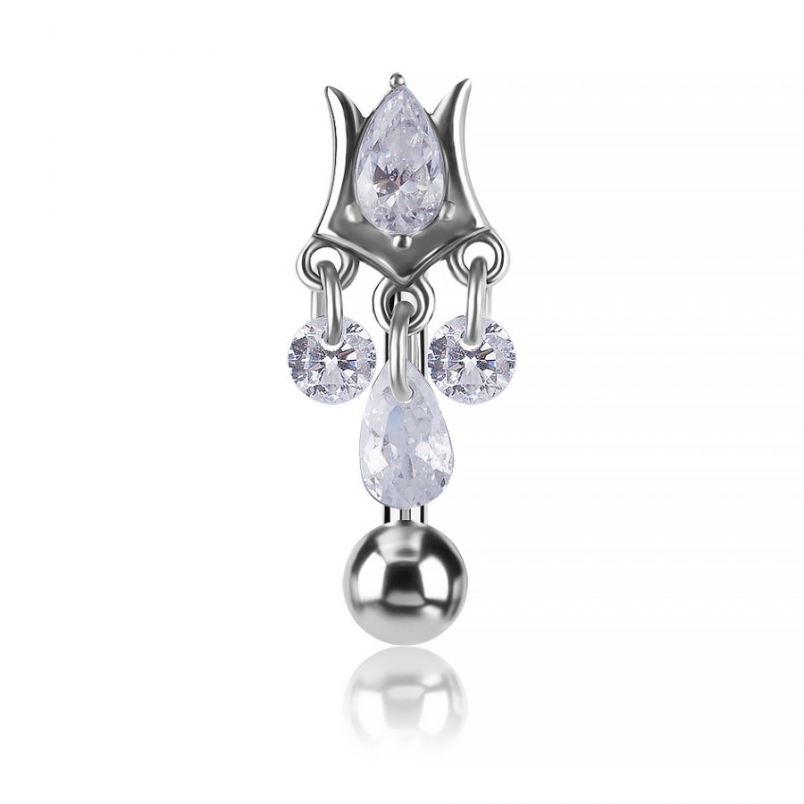 questo piercing per l’ombelico è realizzato in acciaio chirurgico di alta qualità, lucidato a mano e resistente, perfetto per una lucentezza duratura e una sicurezza totale sulla pelle. Il suo design raffinato presenta una goccia centrale scintillante, accompagnata da cristalli bianchi in premium cubic zirconia pendenti che catturano la luce ad ogni movimento.