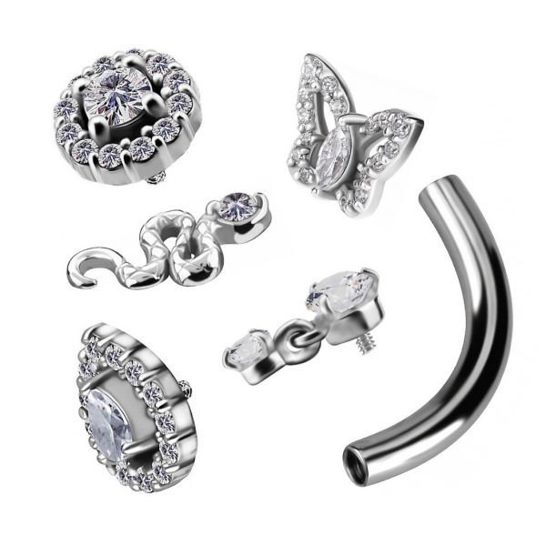 dai spazio alla tua fantasia e crea il tuo piercing personalizzato! questa barretta curva in titanio per ombelico presenta una filettatura interna da 0,8 mm su entrambi i lati, progettata per garantire che, una volta inserito il ricambio, il gioiello sia orientato in avanti e perfettamente visibile. Compatibile con tutti i nostri ricambi dotati di filettatura esterna da 0,8 mm.